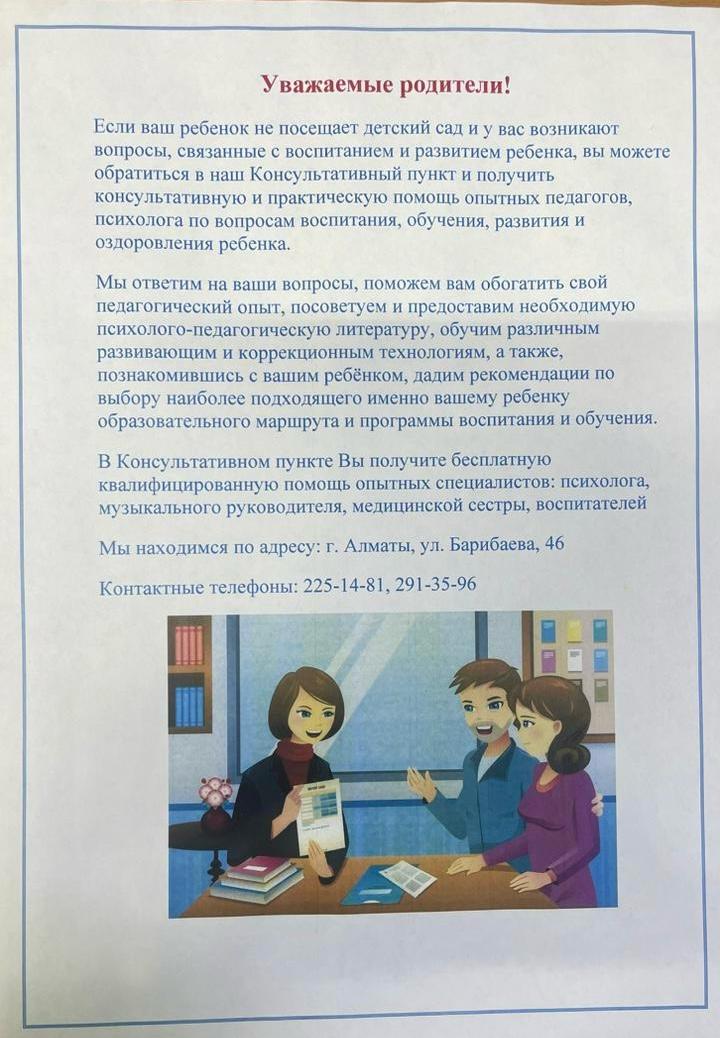 Консультациялық пункт жұмыс кестесі » ГККП "Ясли сад №106"