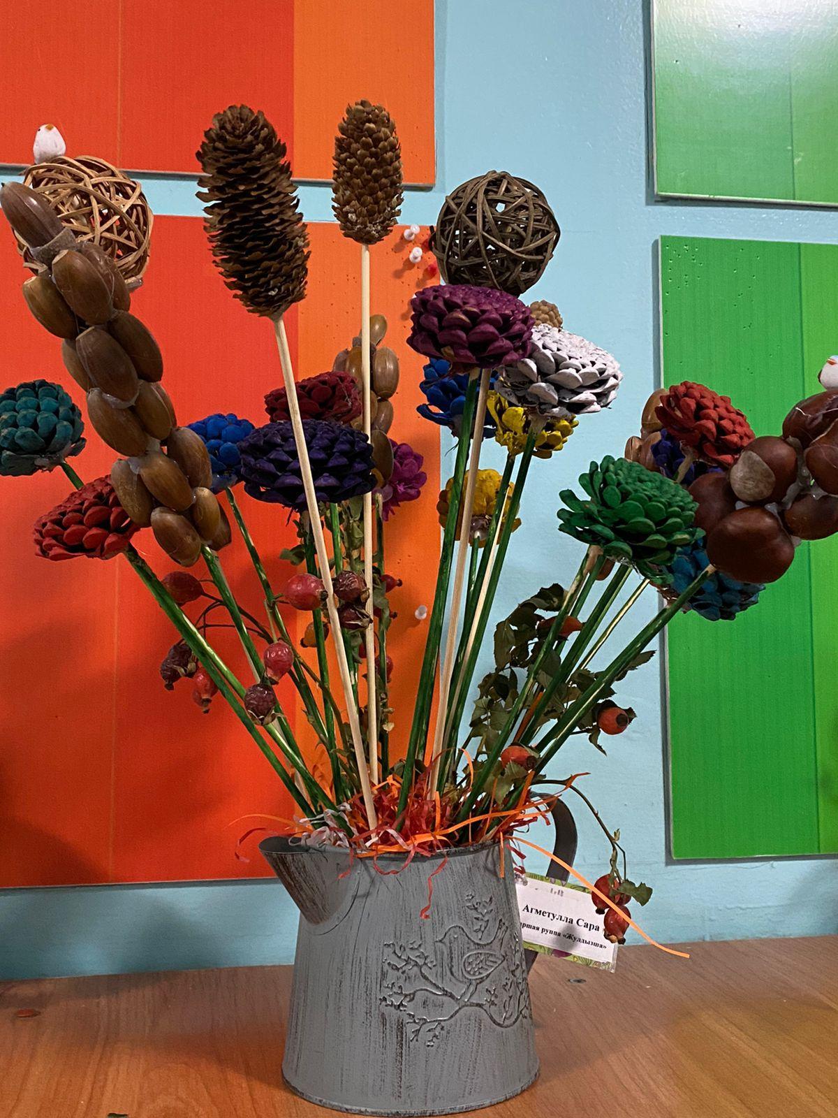 "Күзгі қиял" тақырыбында табиғи материалдан жасалған қолөнер көрмесі.Выставка поделок из природного материала на тему "Осенние фантазии"