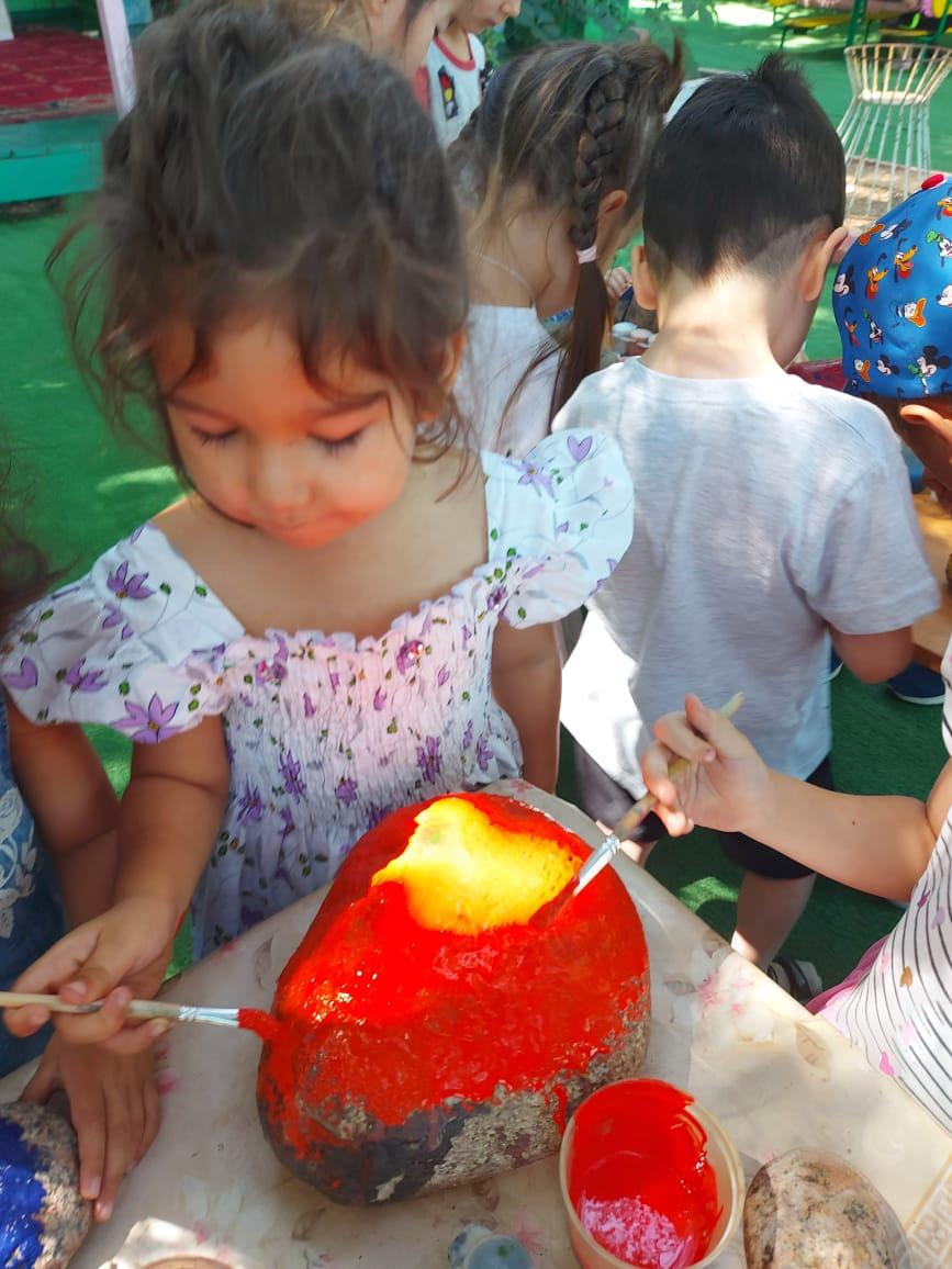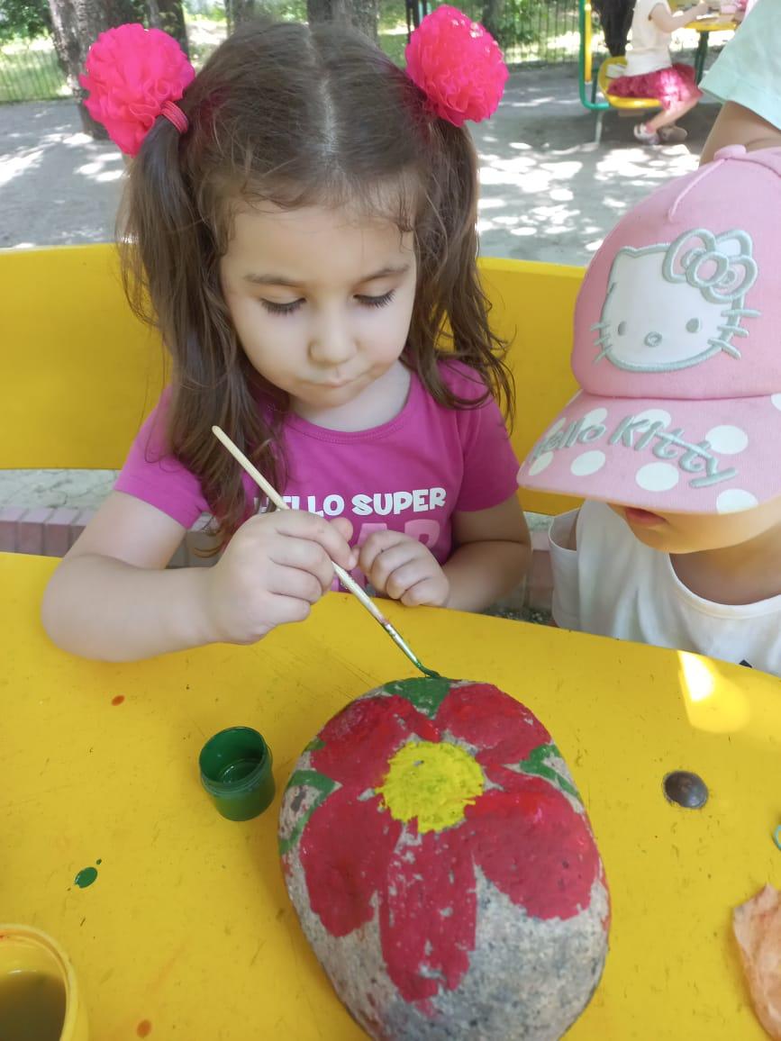 Кто-то из детей принес гладкие разной формы и природного цвета камни в детский сад, все дети стали увлеченно рассматривать, камни их заинтересовали, увлекли, сами дети включали камни в сюжет своей игры. На прогулке на территории детского сада дети начали собирать понравившиеся мелкие камешки. Дети начали разукрашивать в разные яркие цвета камешки и проявить творчество, фантазию в изготовлении поделок. Детям идея очень понравилась, они с энтузиазмом увлеченно занялись раскрашиванием камня.