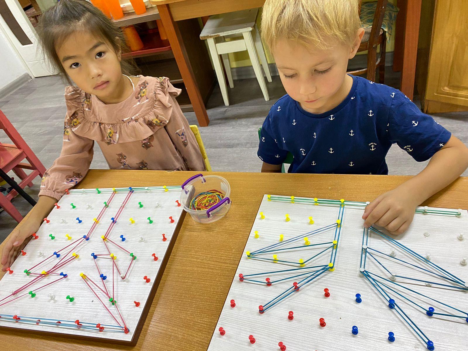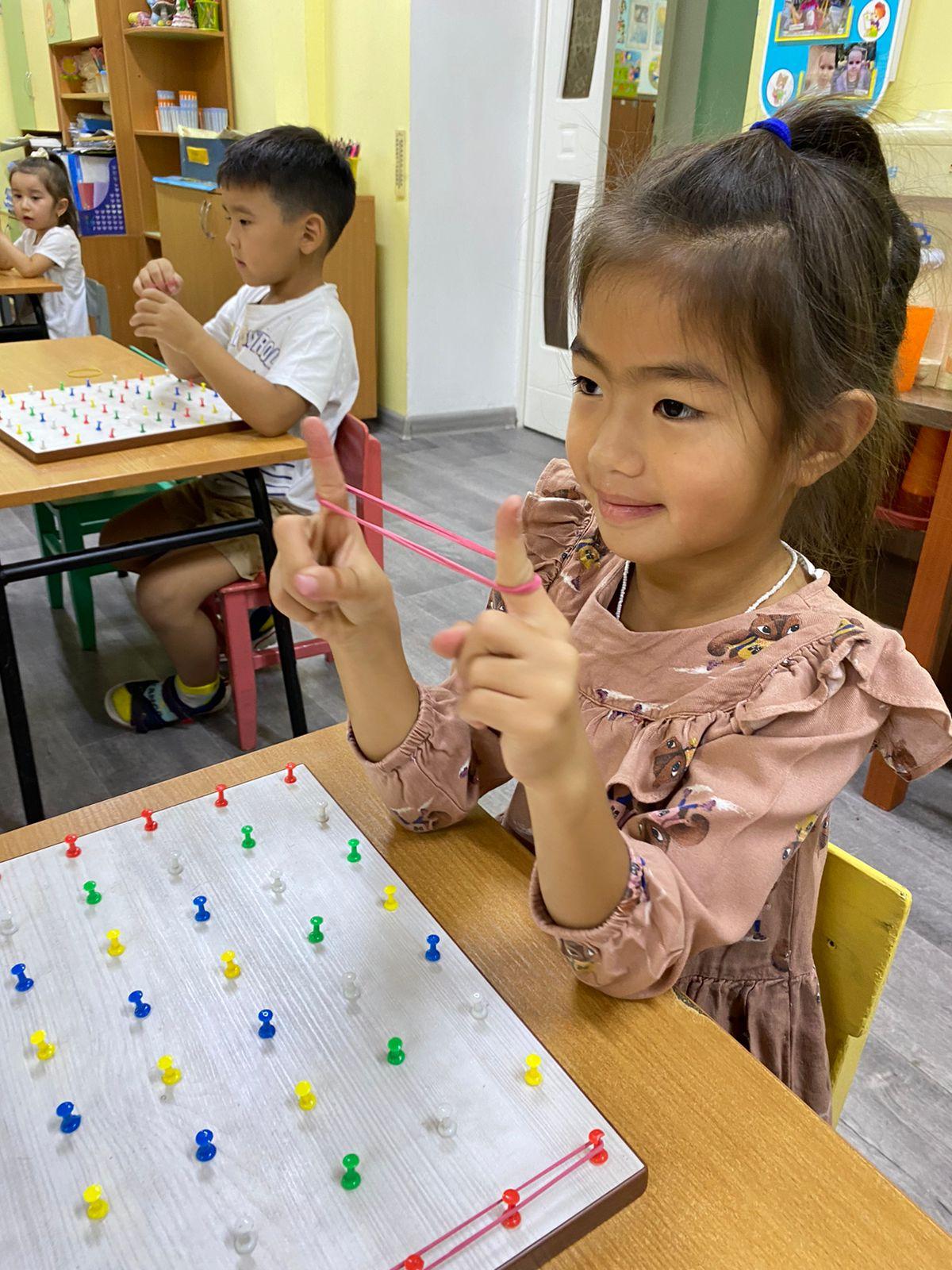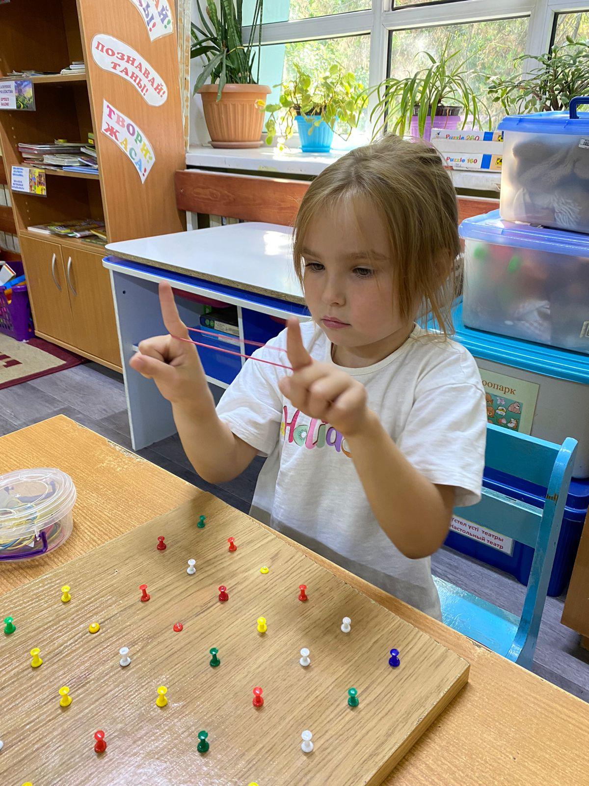 Балаларды оқыту және дамыту кезінде негізгі күш таным процесіне қызығушылықты арттыруға, қателіктерден қорықпай қиындықтарды жеңе білуге - танымдық міндеттерді шешудің жолдарын өз бетінше табуға, мақсатқа жетуге ұмтылуға бағытталуы керек. Сонымен, балаларды оқыту қызықты, проблемалық және ойын болуы керек, баланың субъективті ұстанымын және оның тәуелсіздігі мен шығармашылығының үнемі өсуін қамтамасыз етуі керек. Осы міндеттердің барлығын шешуге жаңа буын ойындары көмектеседі.Практикалық қызметте біз жұмыс үшін Воскобовичтің білім беру ойындарының бірі-Геоконтты алуды шештік.Алғашқы кездесуде балалар әртүрлі түстері бар "тақтаны" қарастырды, резеңкелермен ойнады, оларды саусақтарымен созды, содан кейін олар ешқандай тапсырмасыз тақтаға резеңкелерді тарта бастады. Бала өзі байқамай сандар мен әріптерді игереді, түсін, формасын біледі және есте сақтайды, қолдың ұсақ моторикасын жаттықтырады, сөйлеуді, ойлауды, зейінді, есте сақтауды, есте сақтауды жетілдіреді.