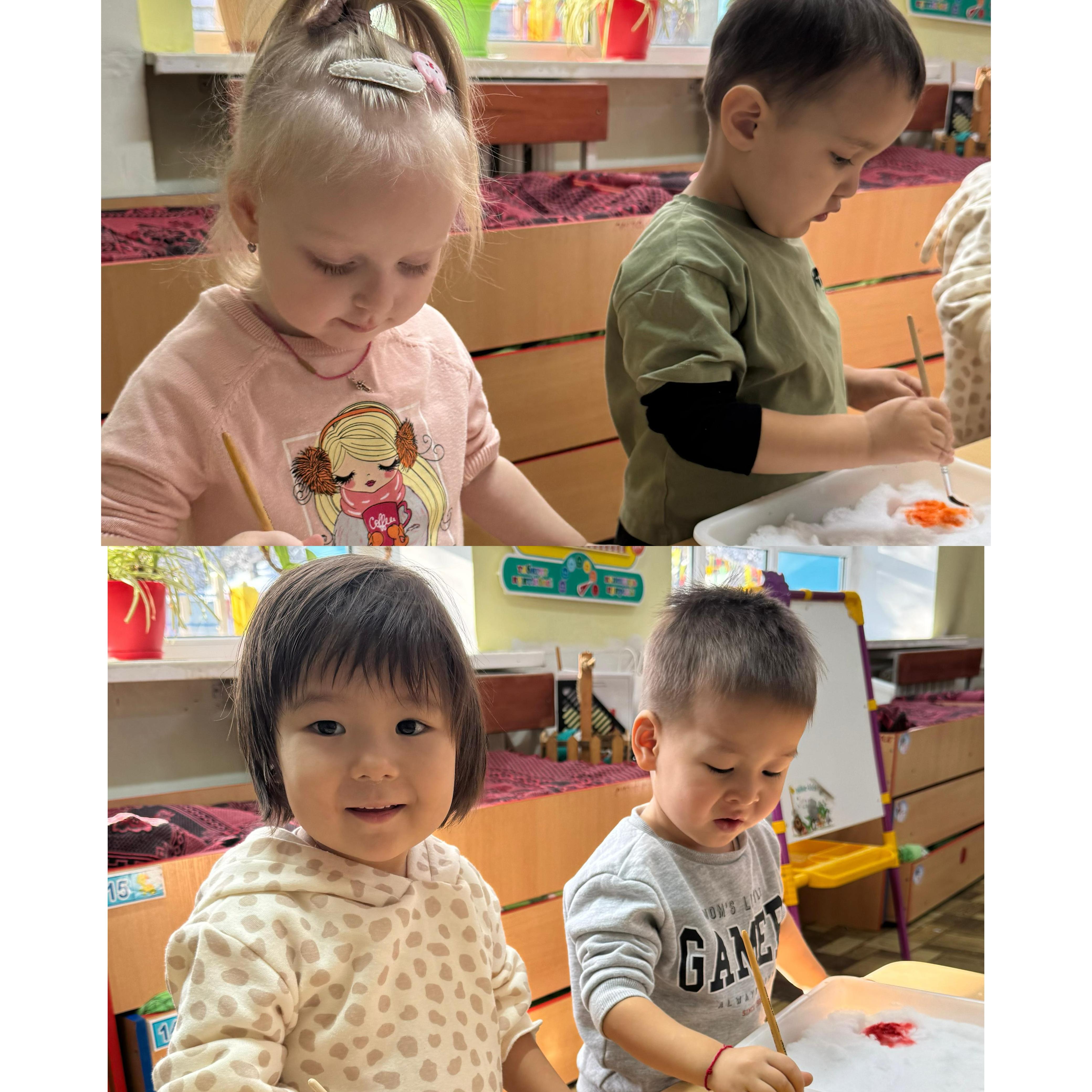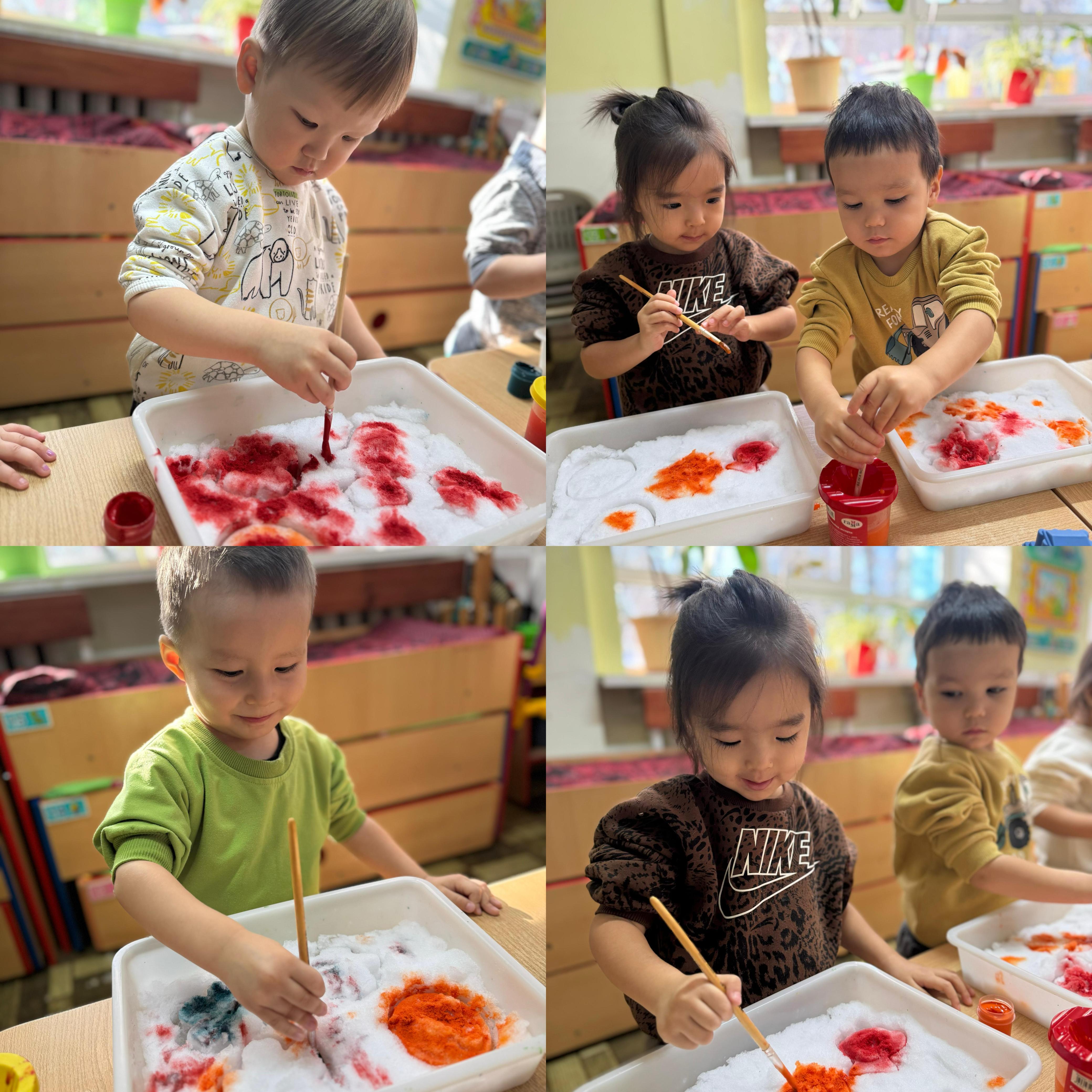 "Эксперимент со снегом" в младшей группе "Балдырған"