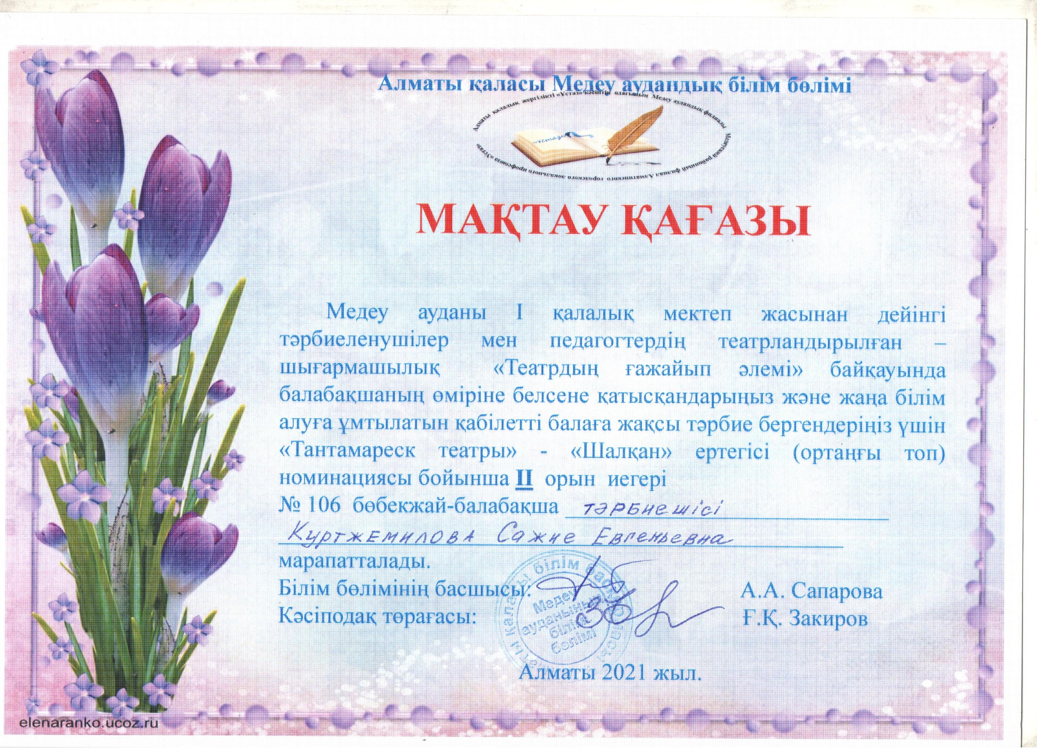 2-место Куртжемилова С.Е- воспитатель средней группы сказка "Репка" "Тантамарески театр"