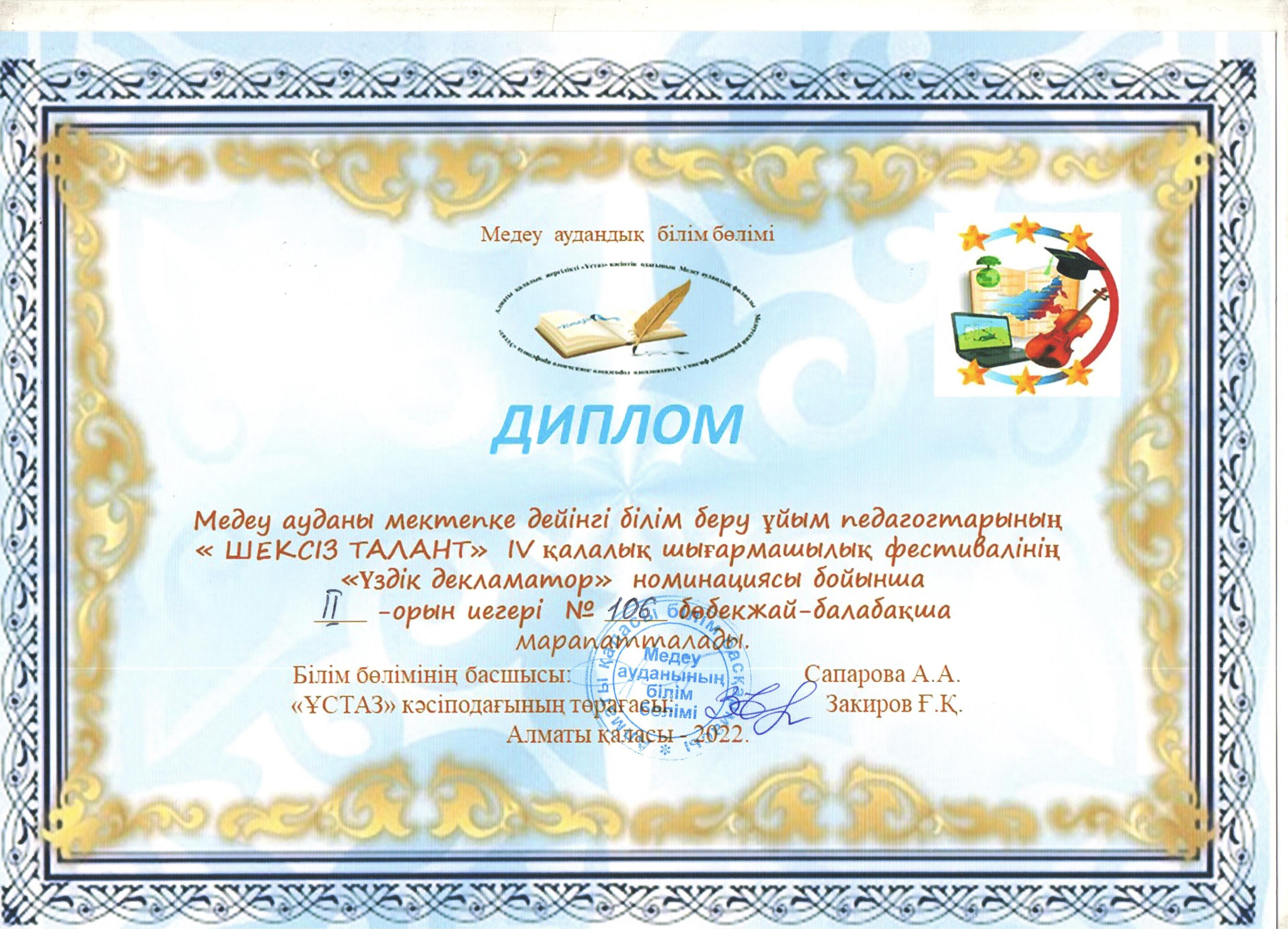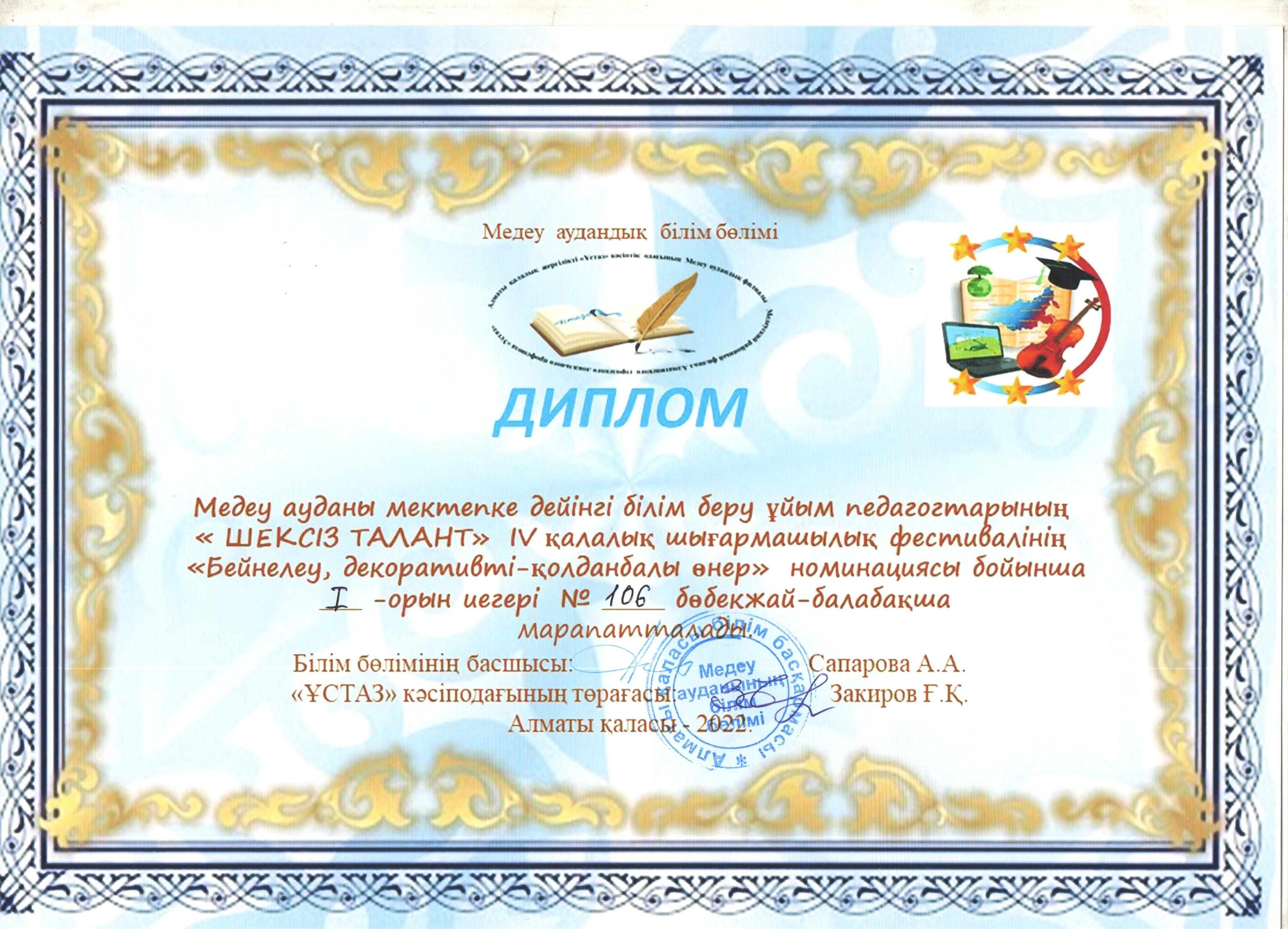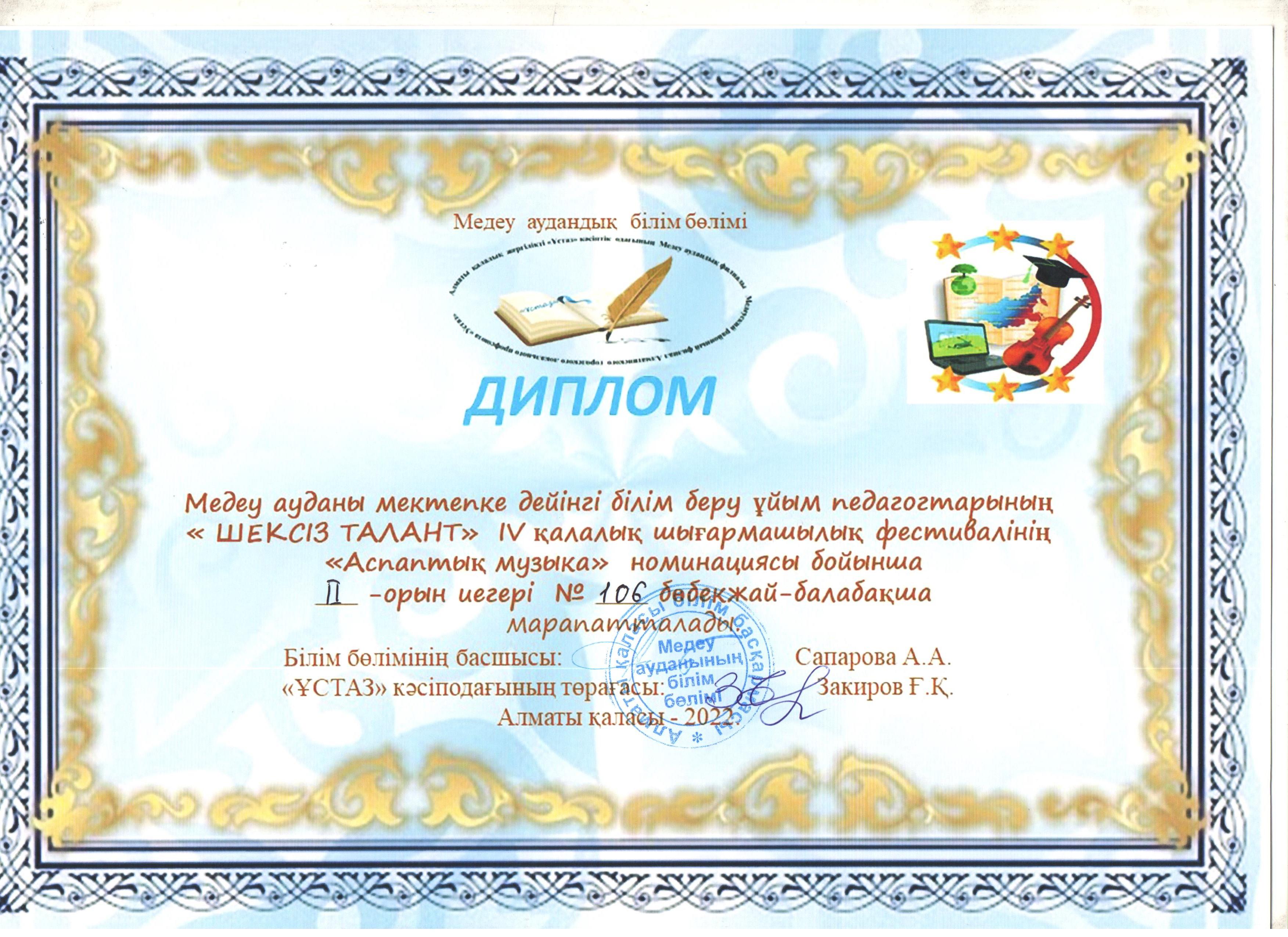 25 мамыр 2022 0 1 2 3 4 5 Біздің жетістіктер.Наши успехи.Победители IV-творческого конкурса. Кузнецова Валерия Геннадьевна-воспитательНурлыбекова Рауан Нурлановна-методист
