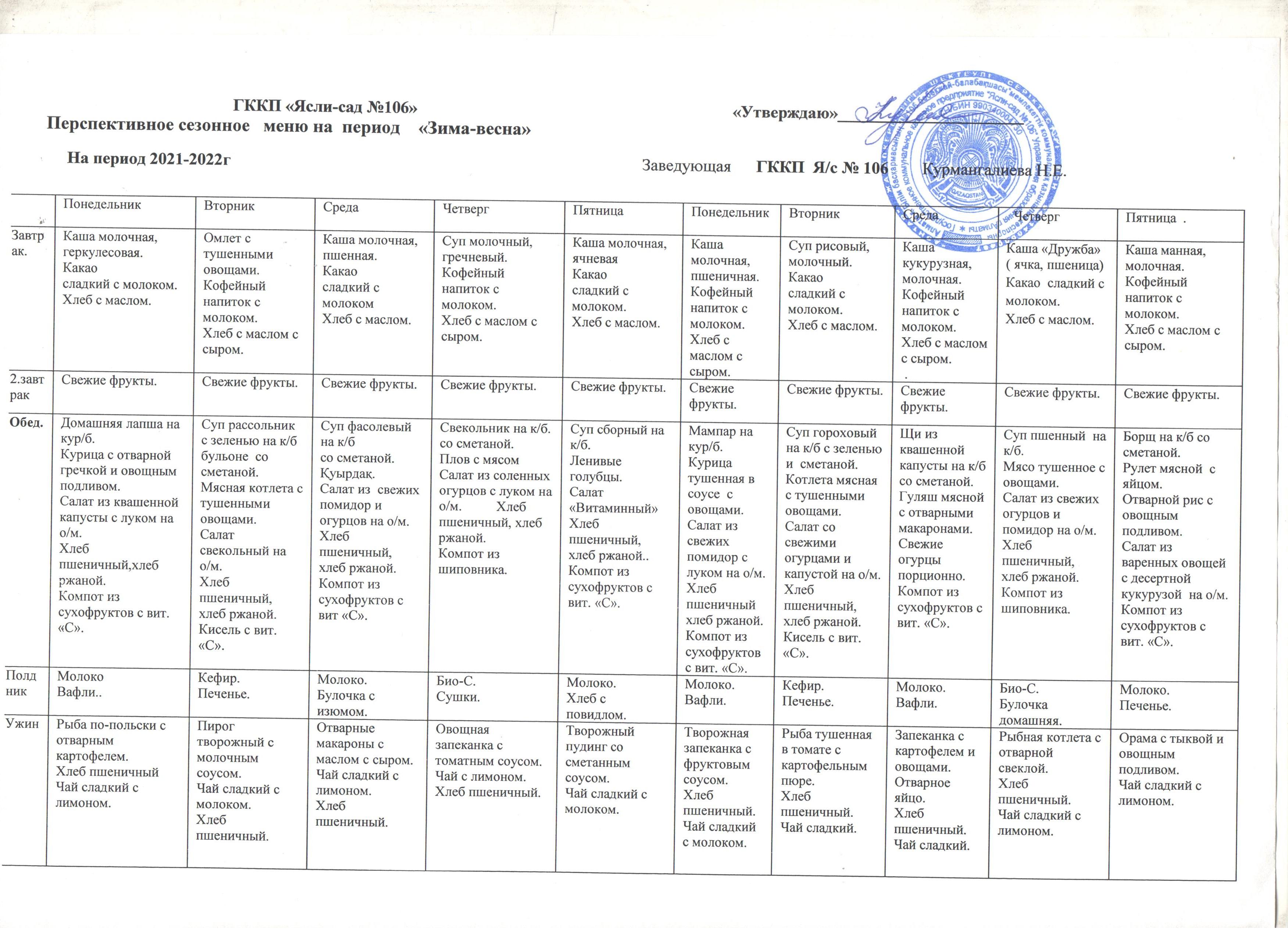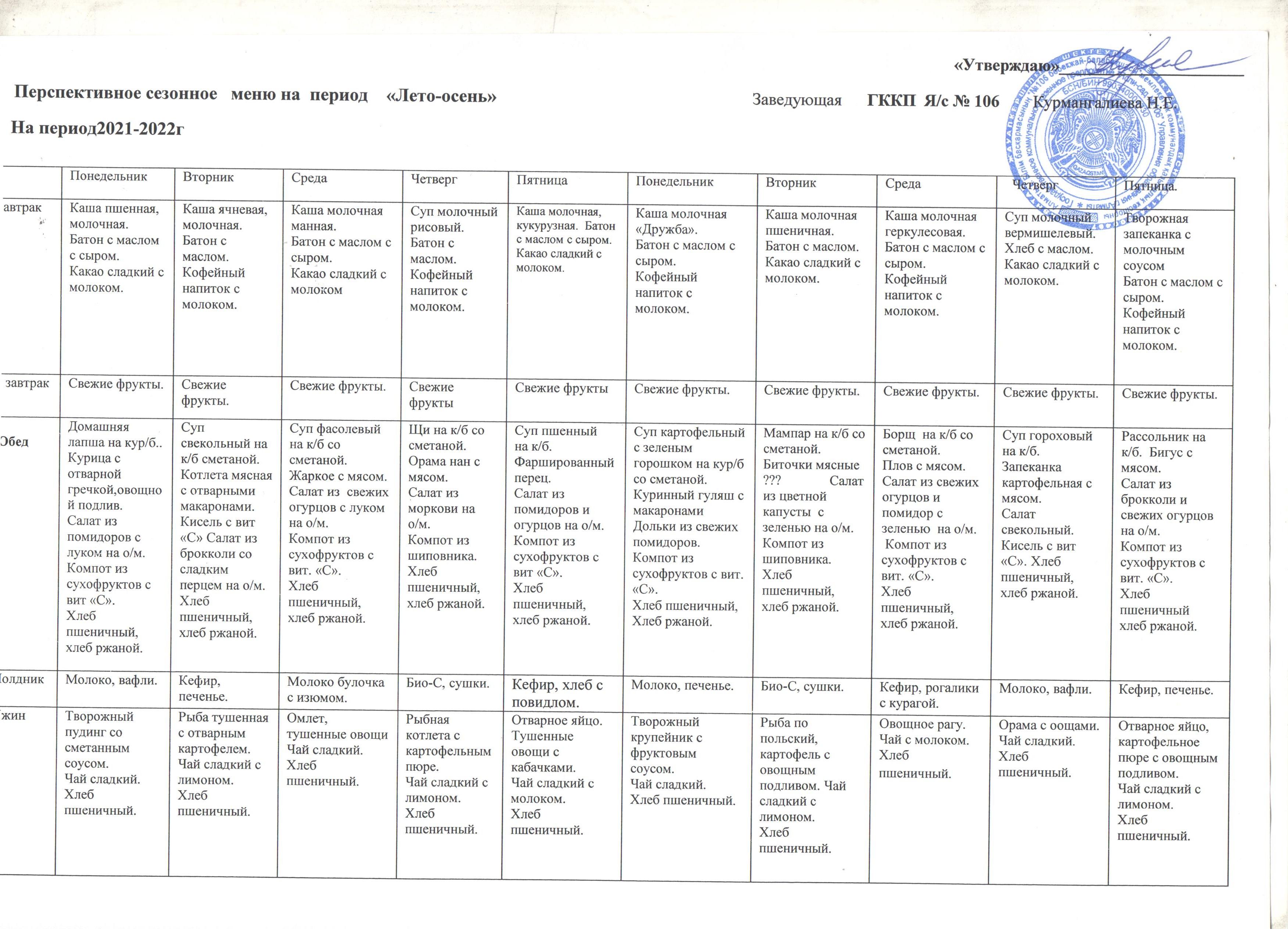 Перспективті ас мәзірі .Перспективное меню. » ГККП "Ясли сад №106"