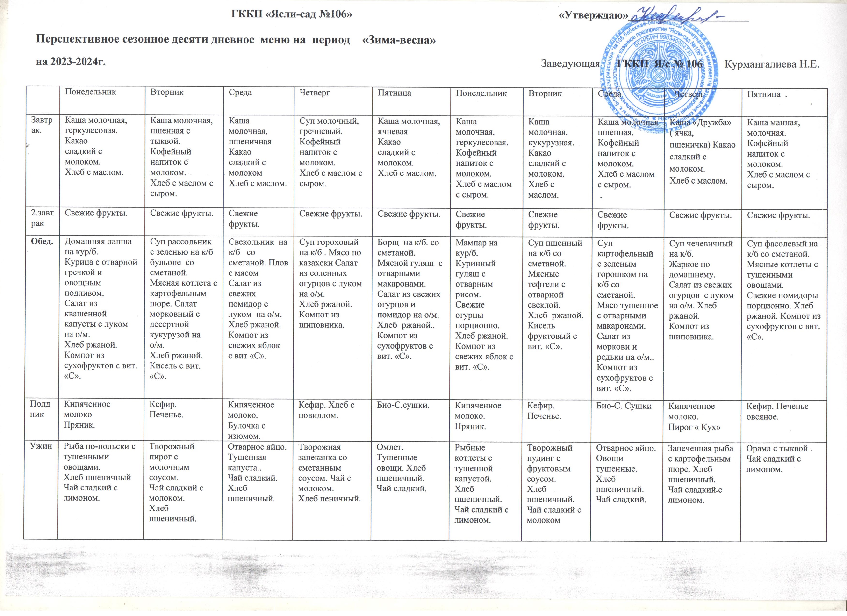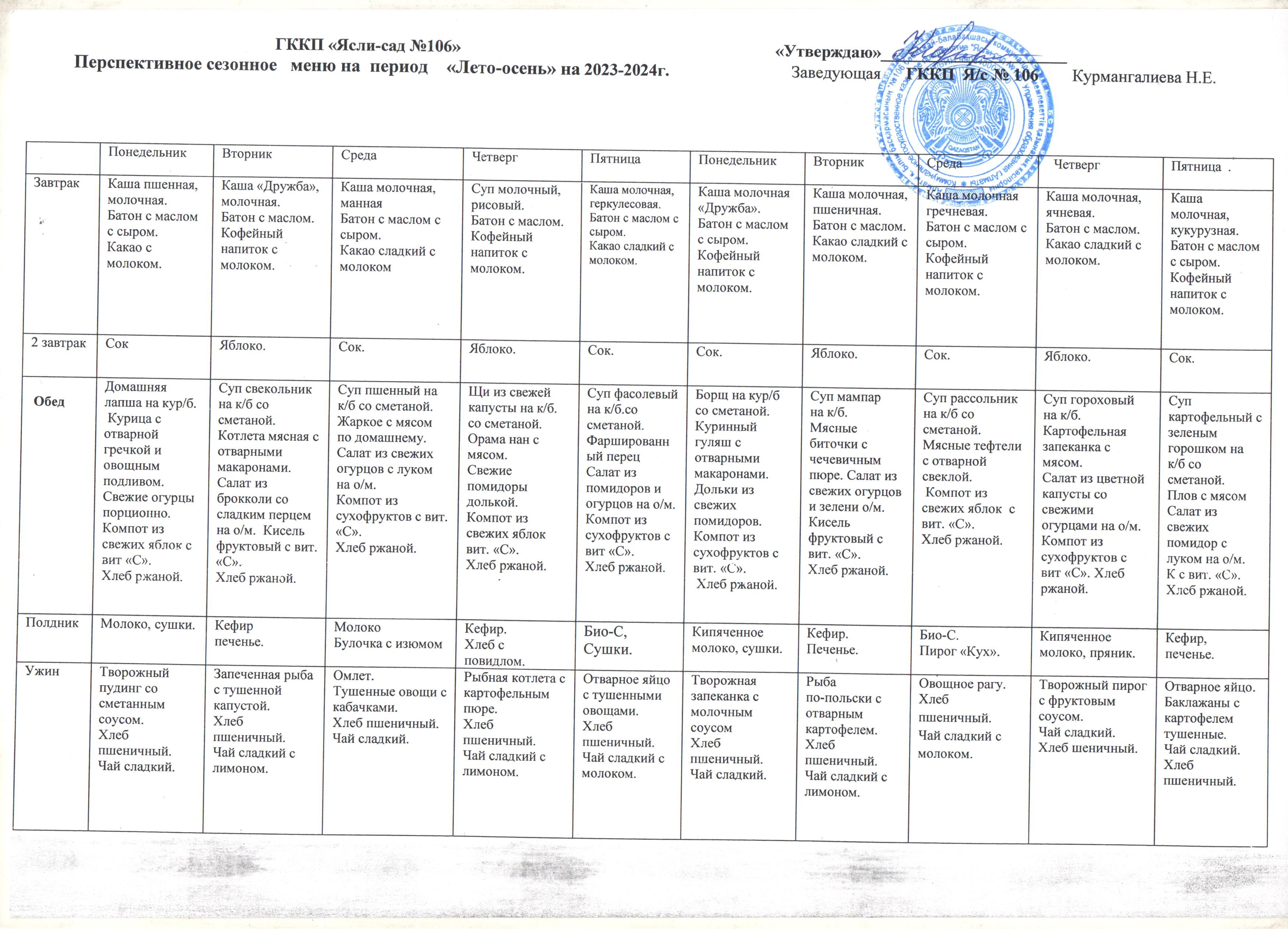 Перспективті онкүндік ас-мәзірі. Перспективное десятидневное меню. » ГККП "Ясли сад №106"