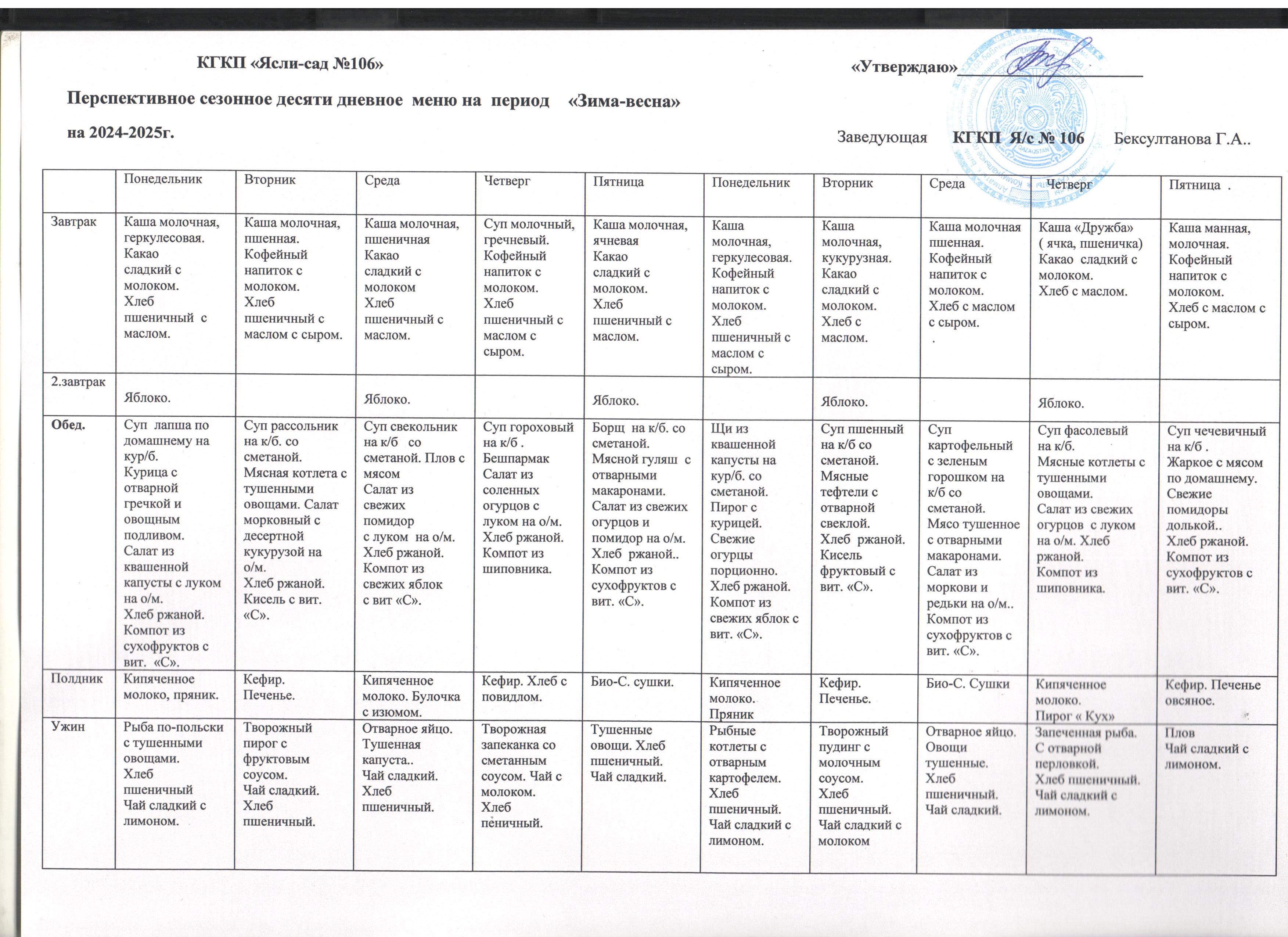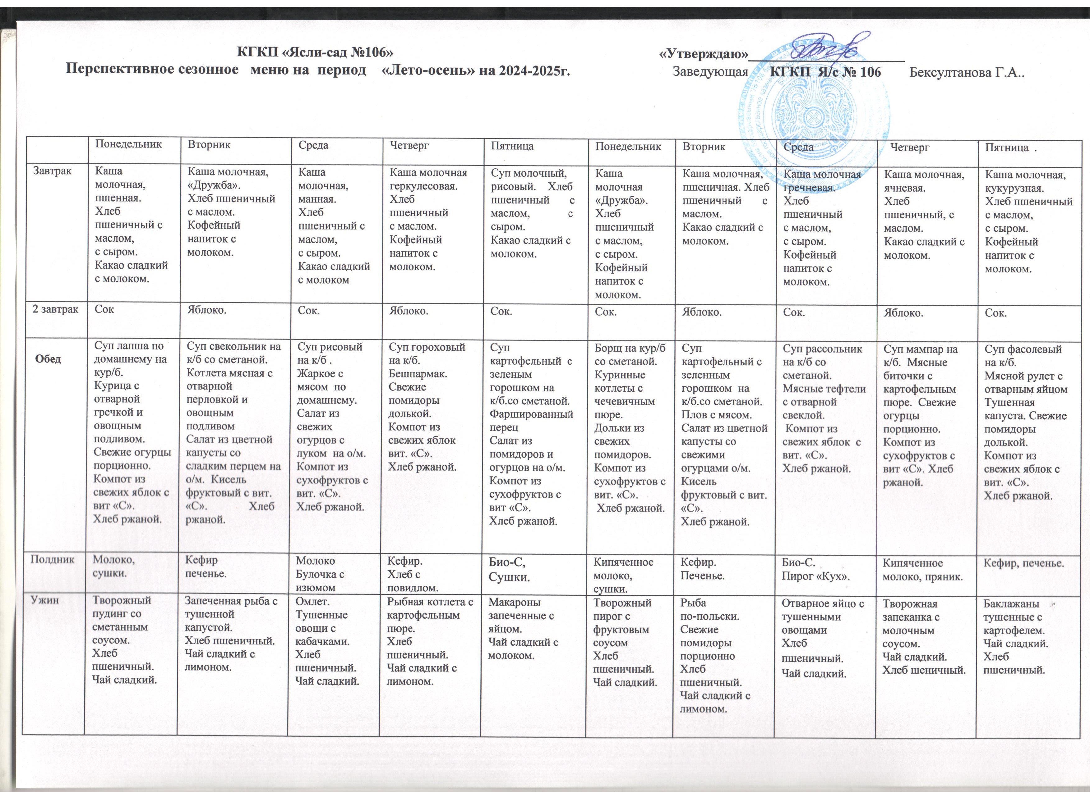 02 қыркүйек 2024 0 1 2 3 4 5 2024 - 2025 оқу жылына арналған 10 күндік перспективтік ас мәзірі жаз - күз, қыс - көктем