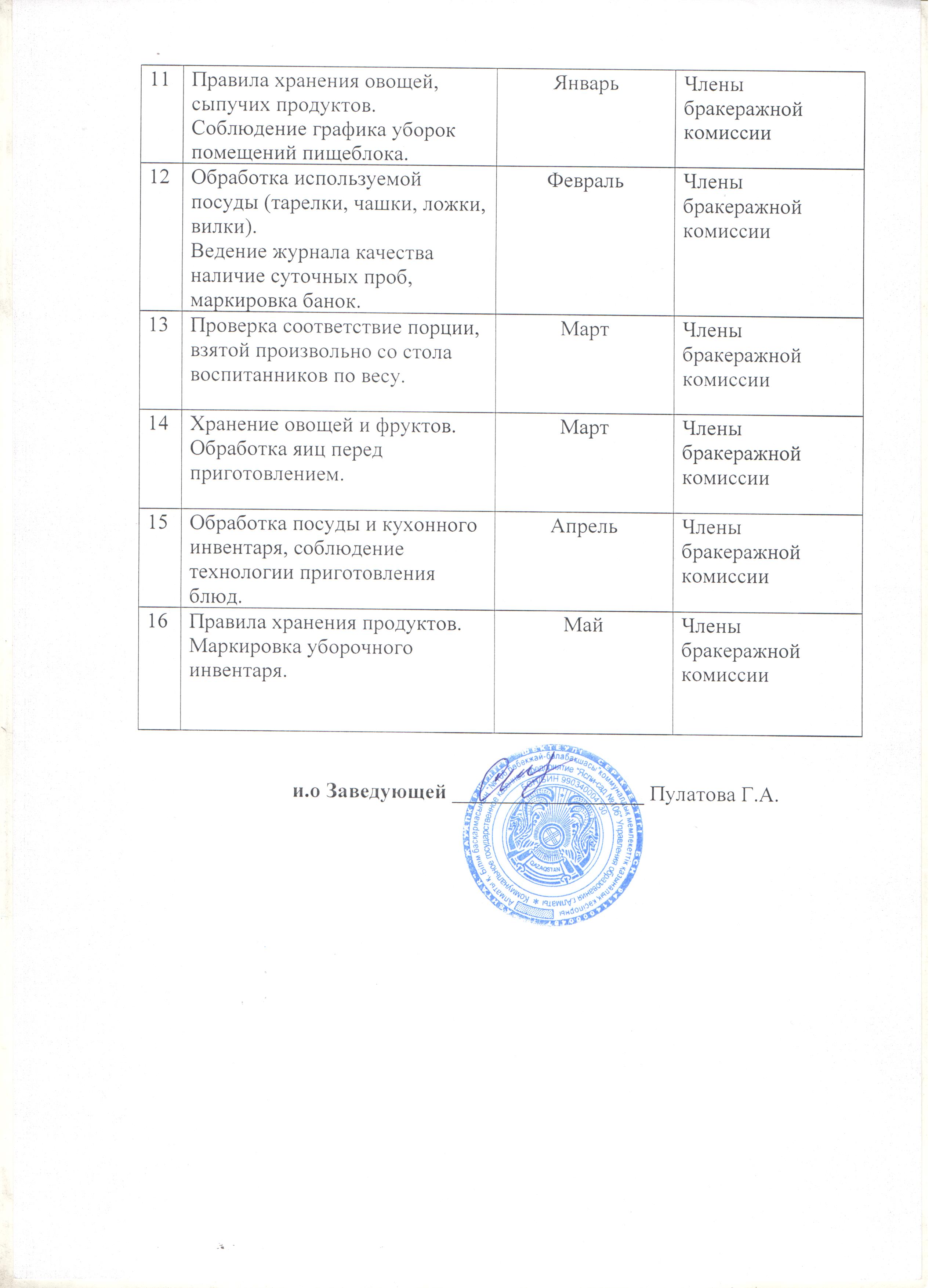 План бракеражной комиссии на 2023-2024 год » ГККП "Ясли сад №106"