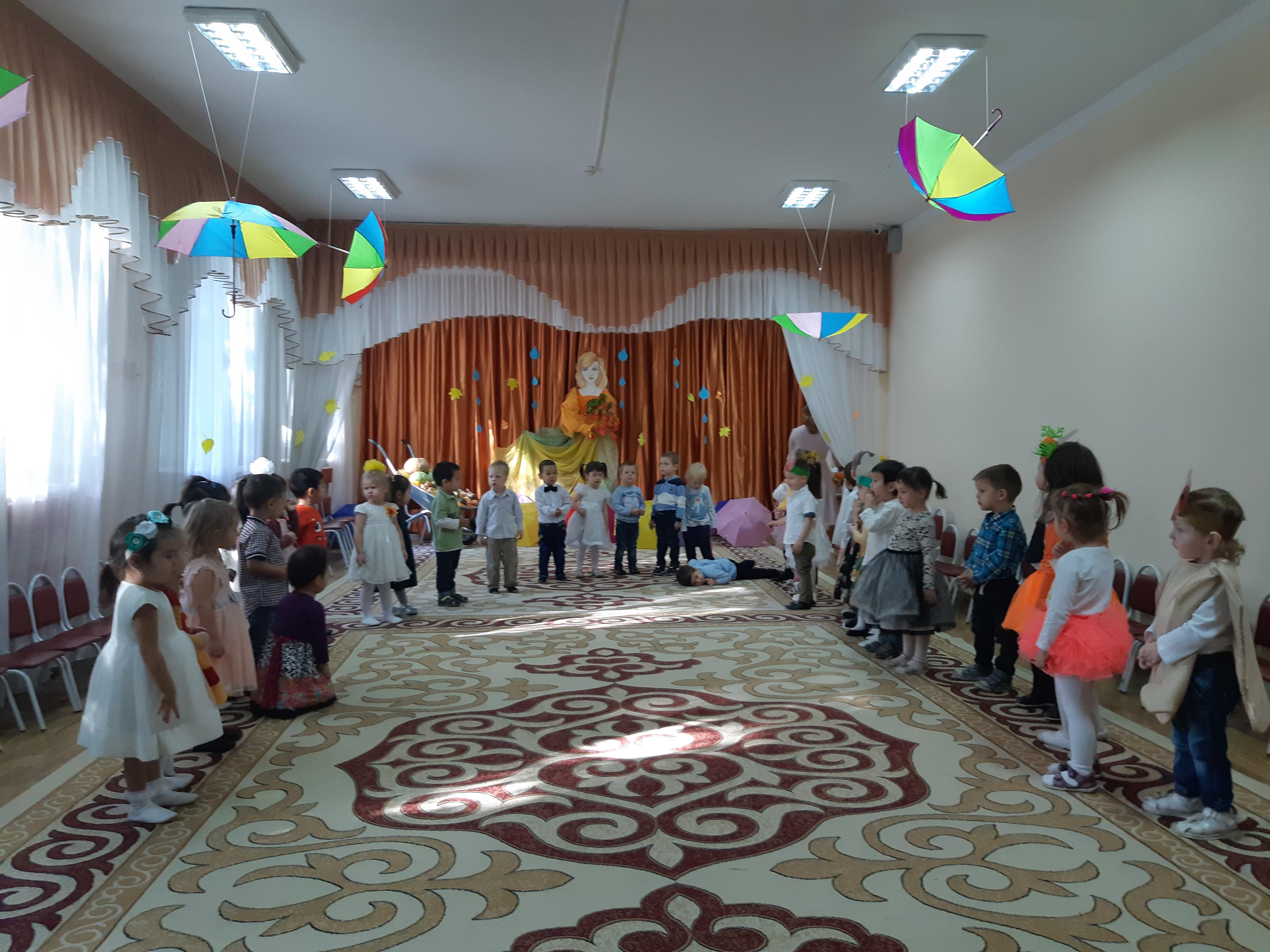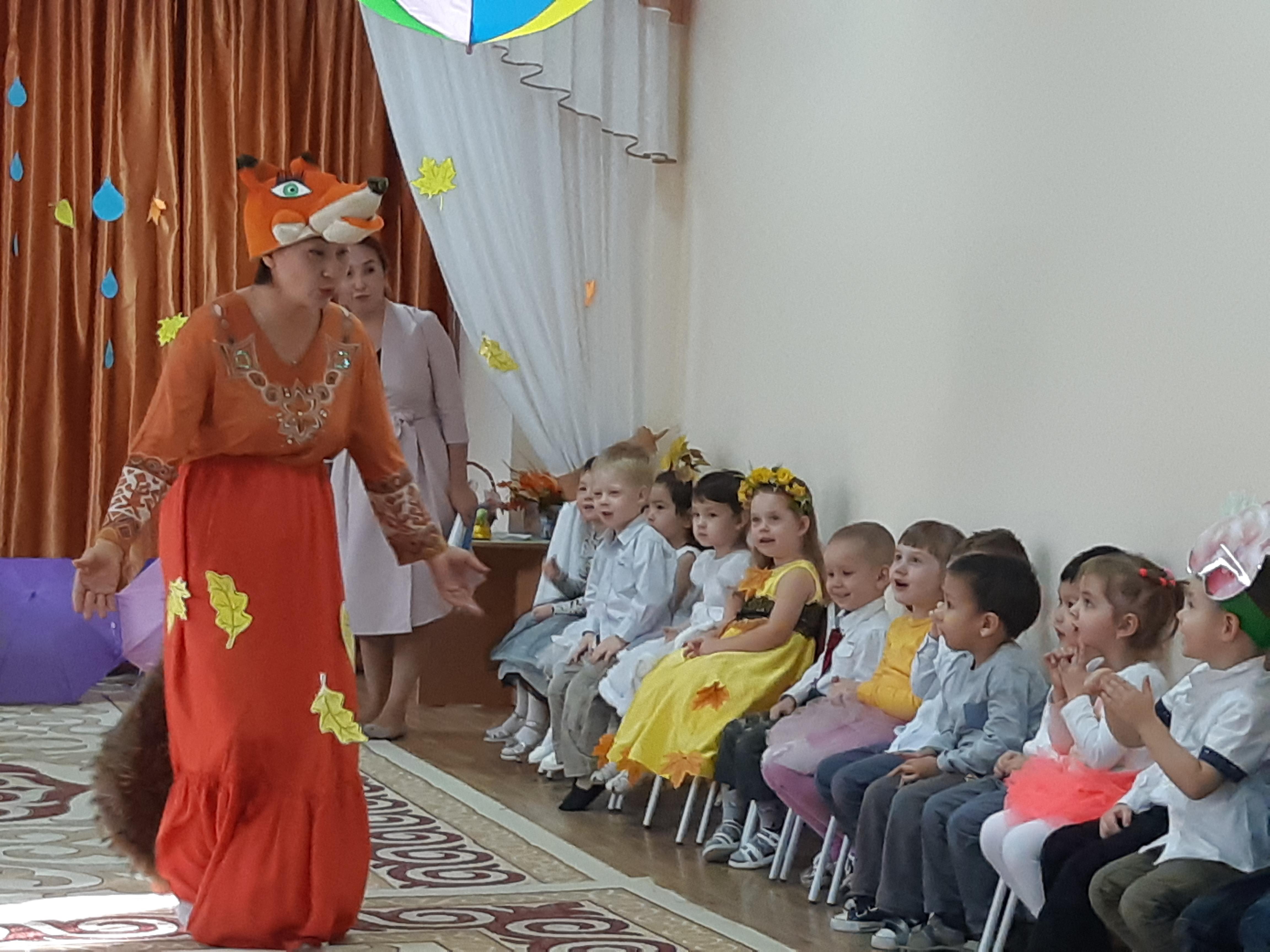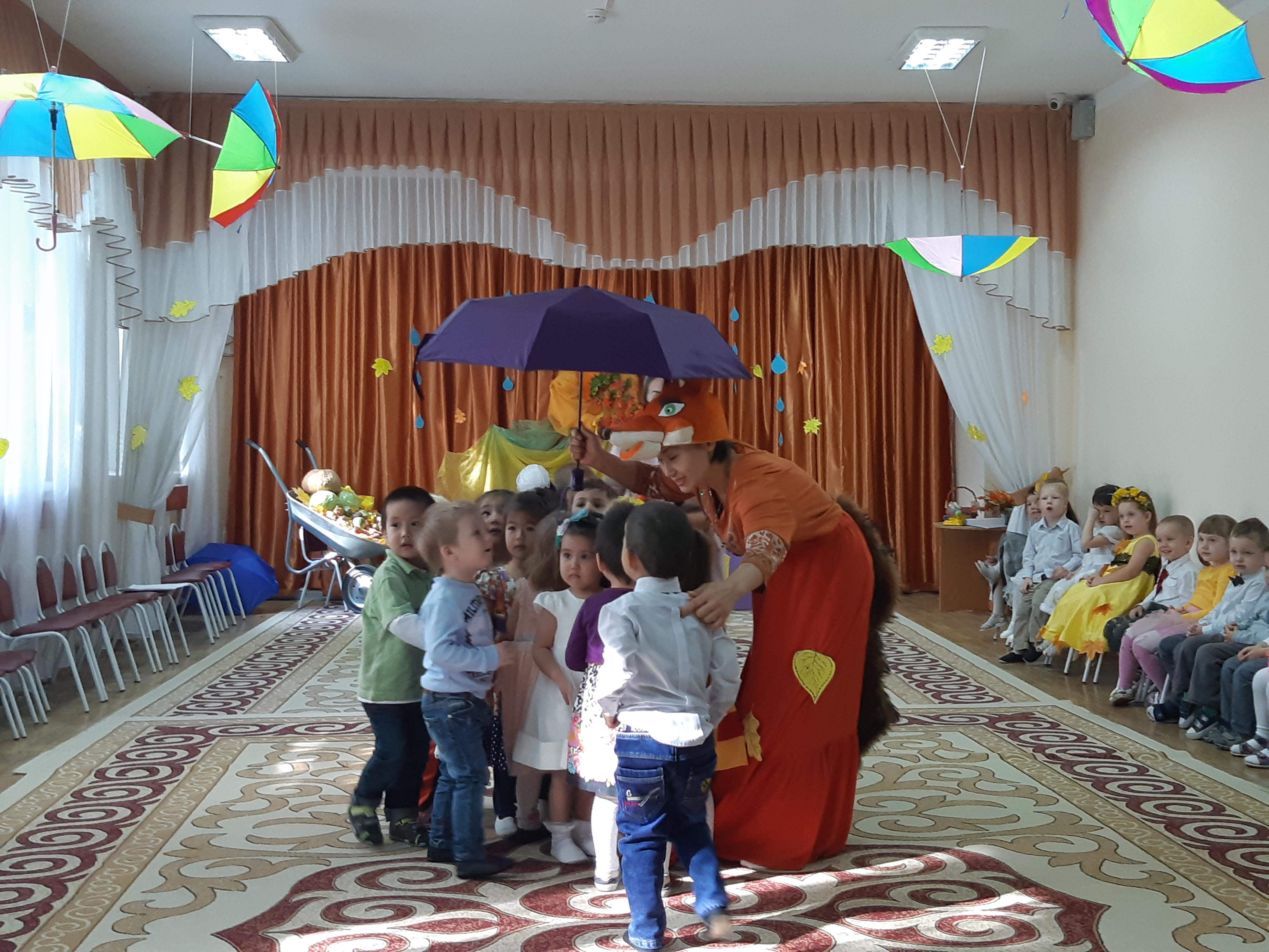 «Осень, Осень, в гости просим!» - Так назывался наш осенний праздник, в котором приняли активное участие дети всех возрастных групп. На дворе слякоть и холодно, а у нас в зале царила теплая, доброжелательная атмосфера. Дети водили хоровод, пели песенки об осени, играли в веселые игры, читали стихи. На празднике дети перевоплощались в разных героев: и в белочку, и в мишку, и в ёжика, и в красавца мухомора.