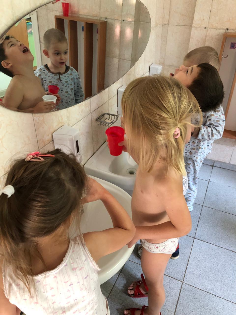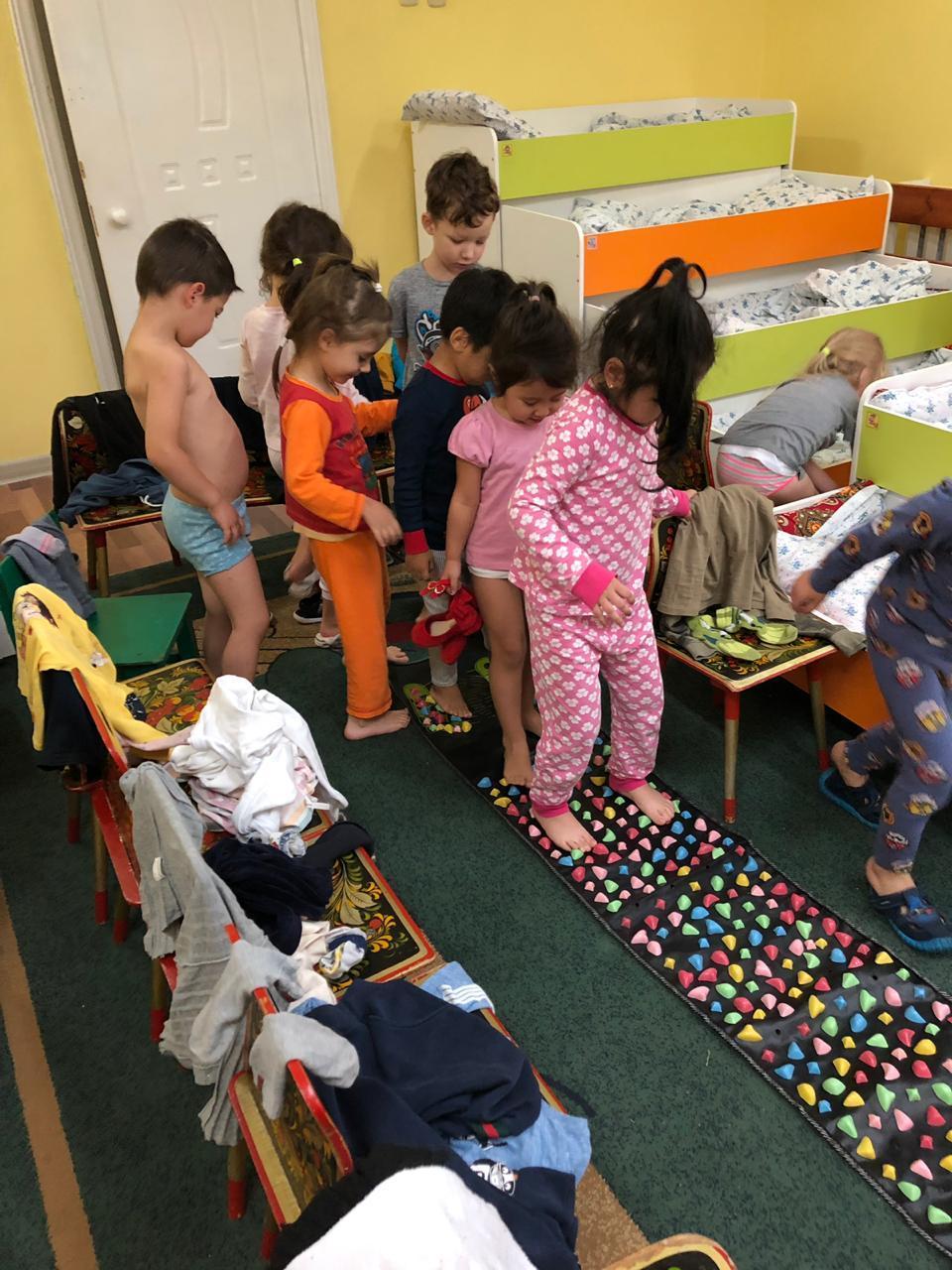 Закаливание детей в ГККП "Ясли-сад №106" состоит из системы мероприятий, включающих элементы закаливания в повседневной жизни, которые включены в режимные моменты и специальные мероприятия: воздушные ванны, солнечные ванны, водные процедуры, правильно организованную прогулку, являются частью физкультурных занятий.