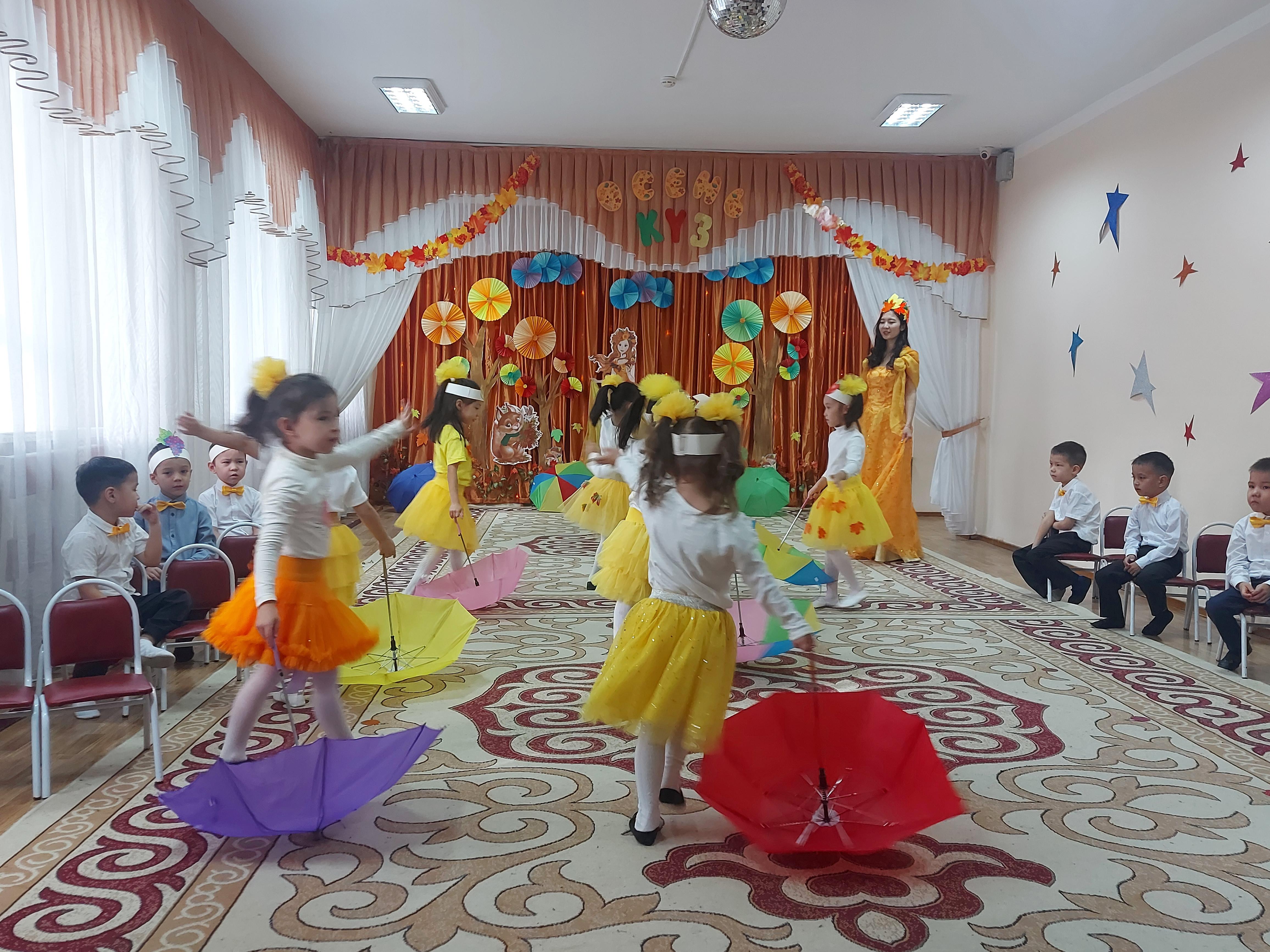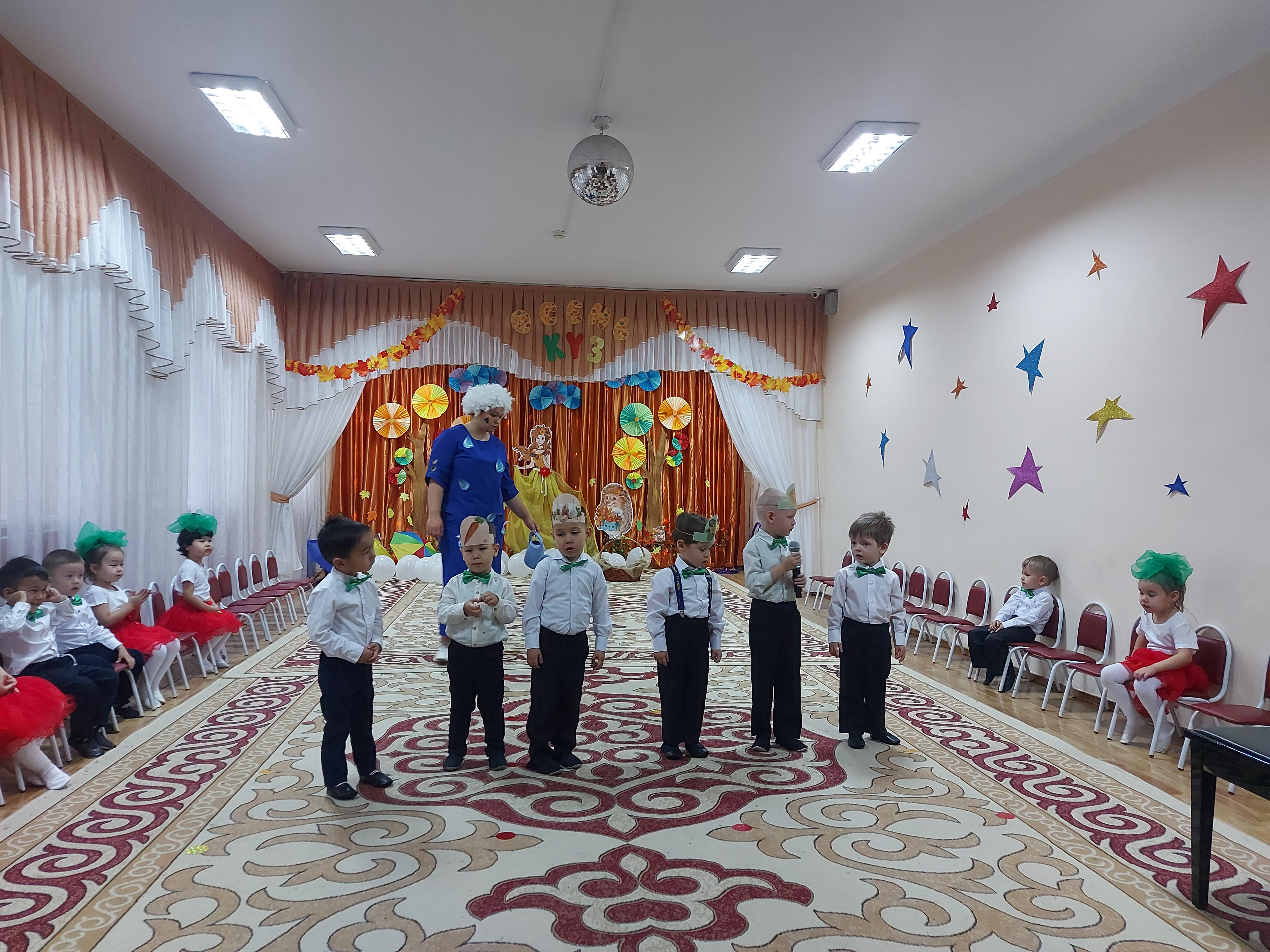 Балабақшада "Алтын күз" мерекесі өтті.Оған балғындармен бірге ата-аналар қауымы да қатысты. Аталмыш мерекеге балалар үлкен дайындықпен келіпті. Кейбірі ән салып, би билесе, енді біреулері жеміс-жидектер туралы мақал-мәтелдер айтып, өлеңдер оқып, мерекенің мазмұнын аша түсті. Кішкентай бүлдіршіндердің өнеріне ата-аналар қауымы тәнті болды. Олар жүздері бал-бұл жанған балғындардың қуанышына ортақтасып қана қоймай, өздері де бір сәт балалық шаққа саяхат жасап келгендей әсер алды.