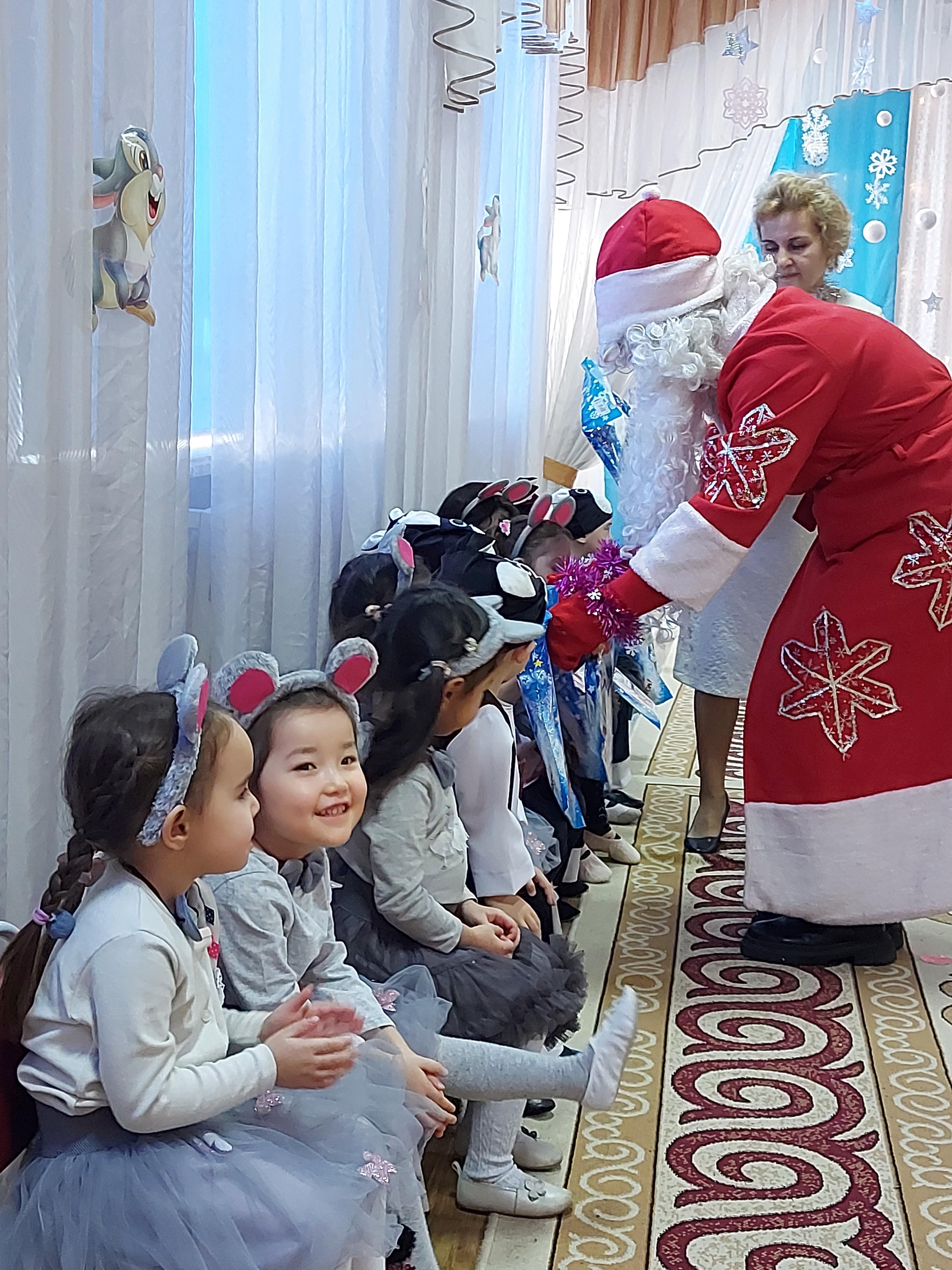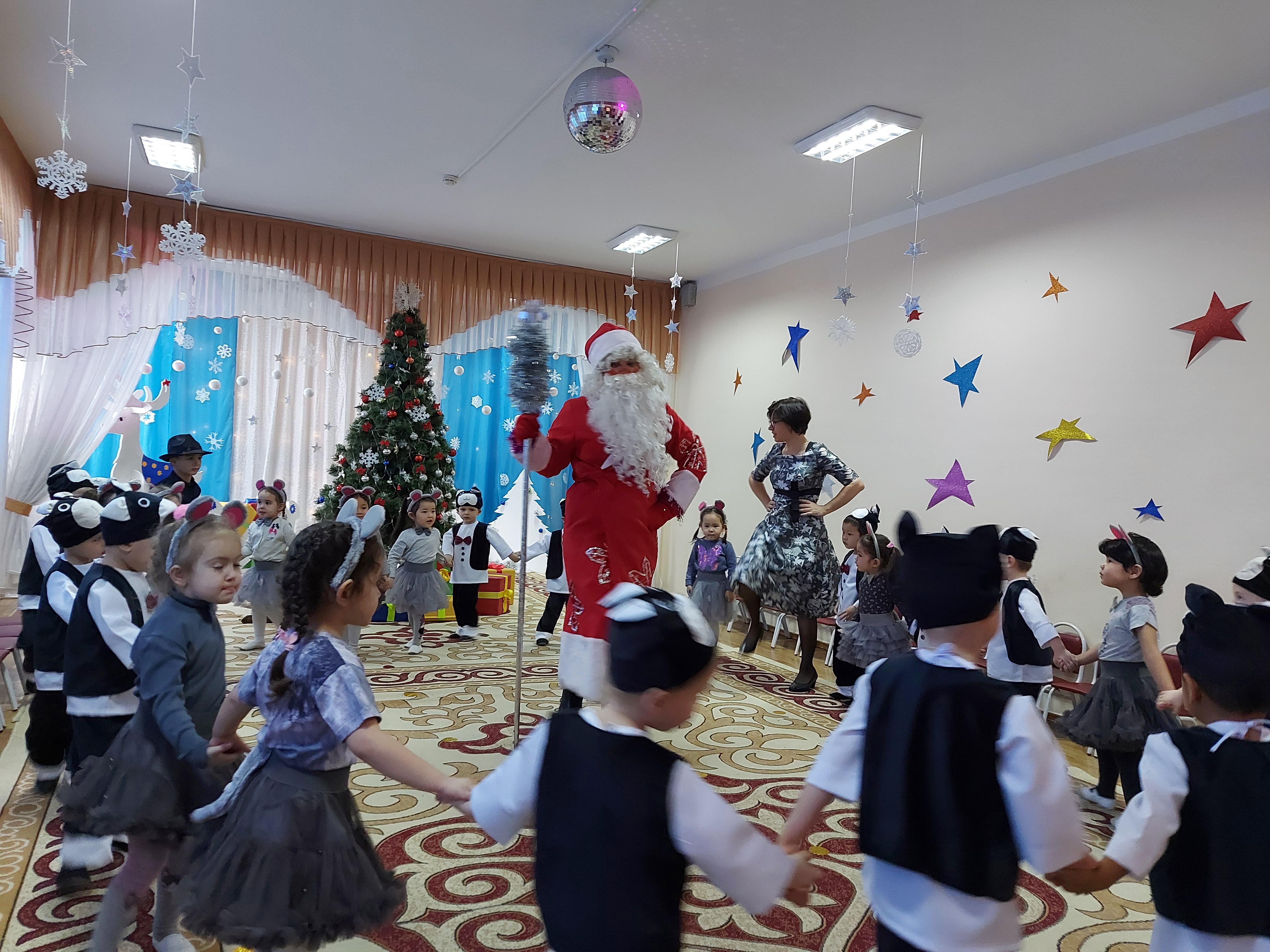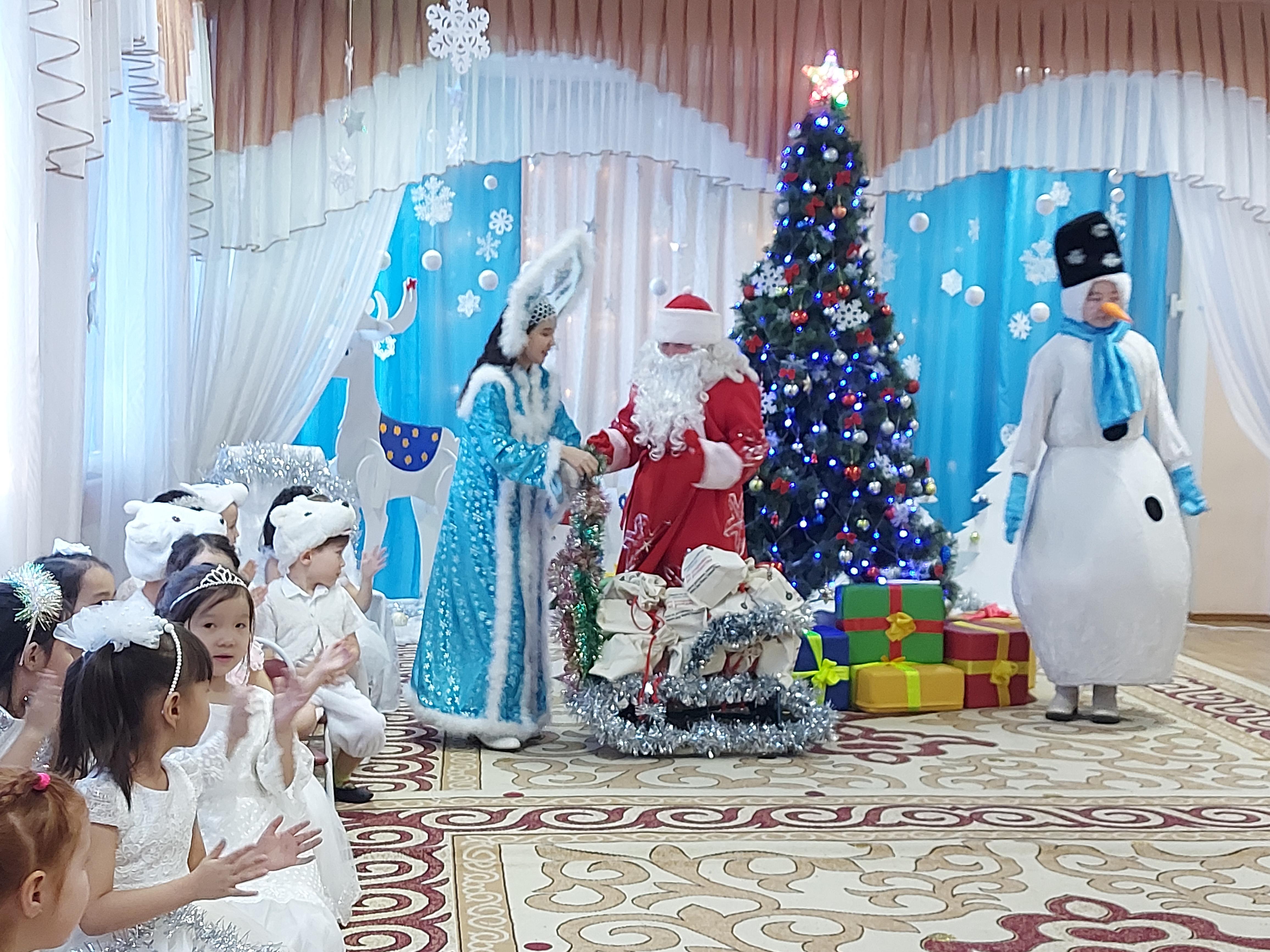 Жыл сайын желтоқсан айының соңында барлық жастағы топтардың тәрбиеленушілері үшін біздің балабақшада мерекелік жаңа жылдық ертеңгіліктер ұйымдастырылады. Әдемі безендірілген зал, әсем шырша, керемет костюмдер, сыйлықтар, Аяз Ата, Ақшақар және басқа да көптеген ертегі кейіпкерлері біздің тәрбиеленушілерді күтті. Түрлі-түсті, жарқыраған гирляндалар мен жарқын безендірілген шырша балаларға керемет сезім сыйлады. Спектакльдің басынан бастап ертегі кейіпкерлері балаларды ертегінің сиқырлы әлеміне тартты. Балалар мерекелік шытырман оқиғалы атмосфераға еніп, қызықты байқауларға қатысты. Аяз Атаның пайда болуымен нағыз мереке шыршаның айналасында әндер мен билермен, дөңгелек билермен басталды. Барлық балалар өздерінің таланттарын қуана көрсетті: би биледі, өлең айтты, ән айтты, ойнады. Ешкім бей-жай қарамады. Қуаныш пен эмоциялар теңізі Аяз Атаның қолынан балаларға берілген сыйлықтарды тудырды! Мерекелер өте көңілді және қуанышты болып шықты, көптеген жағымды әсер қалдырды.