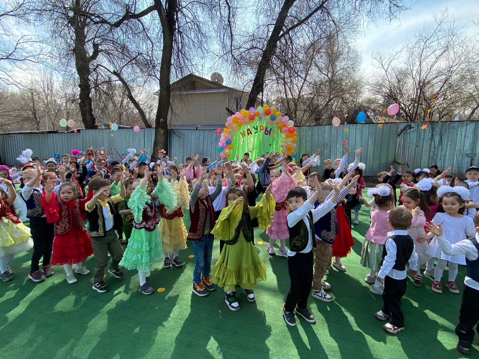 Наурыз – долгожданный всеми праздник весны, символизирующий начало нового года. Это великий день, почитаемый среди казахского народа. Сегодня в детском саду прошел общий утренник «Наурыз-начало года», принимали участие дети всех возрастных групп. Дети играли в казахские национальные игры, читали стихи, исполнили песенки, девочки удивили нежным и красивым танцем «Разноцветные цветочки», мальчики исполнили танец «Кора жорга», малыши принимали участие в обряде «Бесікке салу». В этот праздничный день от всей души желаем Вам крепкого здоровья, семейного благополучия, добра и счастья, радости и взаимопонимания, исполнения всех желаний.